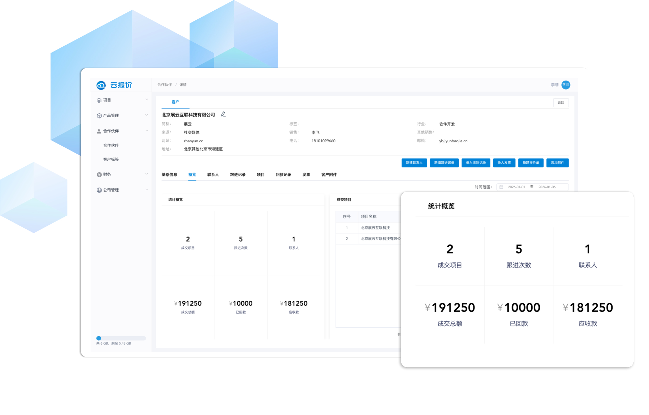 汇总销售数据、回款、发票等,实现统一管理