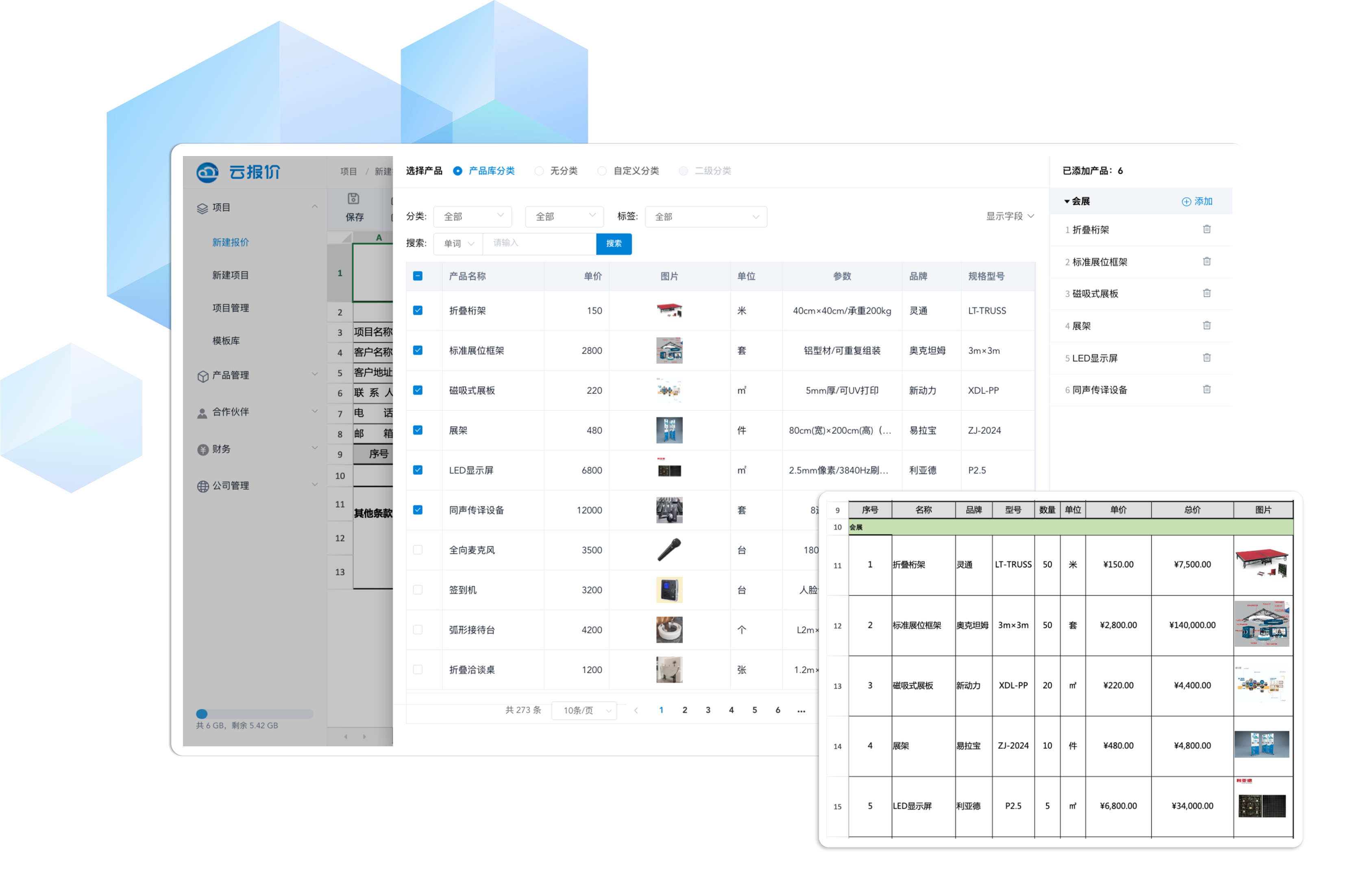 一键调用产品信息及图片,自动复制到报价表中,省去了反复录入的重复性工作,系统自动核价,避免计算失误和人工压力